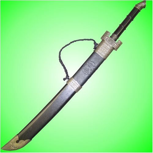 This is a good quality replica of Leo' s sword from the movie "House of Flying Daggers". The sword is the highest quality replica we have ever come across with aged brass fittings and a dark wooden handle; the sword looks like it could have come right out of the 9th century. House of Flying Daggers is another Must See movie after "Hero". If you like "Hero" you will like this one too. You can click on the following link to watch the movie trailer. http://www.sonyclassics.com/houseofflyingdaggers/trailer-open.html Attributes of the Weapon: Blade: The blade of the sword is carbon steel and measures 2 1/4 inches wide. Etched into the steel of the sword is the symbol from the movie. The blade comes already sharpened. Scabbard: The scabbard of the sword is wooden covered in leather. Imprinted into the leather is the Chinese character naming this the sword of " The Legendary Detective " The sheath ends in a brass end cap detailed with a butterfly and leaf. The scabbard throat is aged brass with intricate scroll work in relief. A black carrying cord is fastened to the scabbard throat and another brass fitting in the upper half of the scabbard. Guard: The guard of the sword begins with a detailed brass blade collar securing the blade to the handle. The guard itself is solid brass with two dragons facing each other in relief. The guard ends with a brass fitting at the base of the handle securing the handle to the guard. Handle: The handle of the sword is wooden finished in a black semi gloss. Two rings give the handle grip and comfort. The handle ends in a brass pommel as seen in the movie. The wooden stand doesn't come with this auction but you can buy it in my other auctions. You can choose to put this sword on this stand or the shogun upright stand. It looks great on both of them.