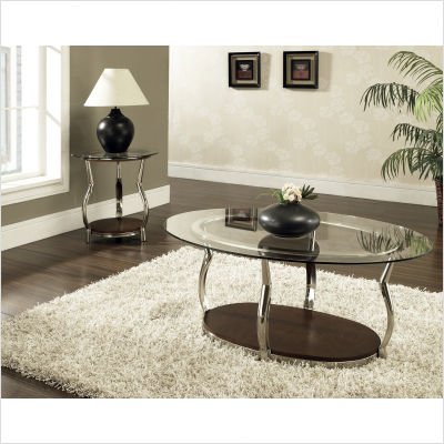 [***INCLUDED IN THIS SET: (1)Abagail Coffee Table, (2)Abagail End Table, (1)Abagail Coffee Table Top, (1)Abagail End Table Top] Features: -Tempered glass top.-Contemporary style.-Oval shape cocktail table with shapely legs.-Round shape end table with shapely legs. Includes: -Set includes cocktail table and end table. Construction: -Sturdy gauge metal construction. Color/Finish: -Wooden base in Espresso finish. Dimensions: -Glass thickness: 8mm. Collection: -Abagail collection. Warranty: -Manufacturer provides one year limited warranty.